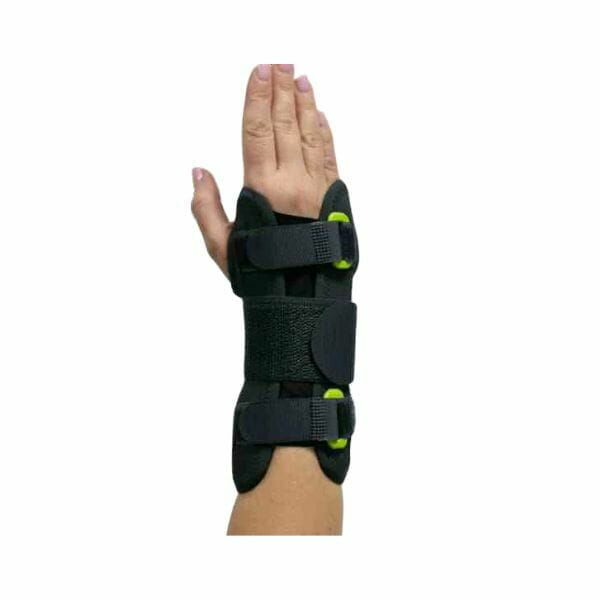- szyna wzdłuż dłoni wykonana z półsztywnego aluminium oraz dwie górne elastyczne fiszbiny wzdłuż grzbietu dłoni umożliwiają lepszą kontrolę zgięcia i stabilizację,