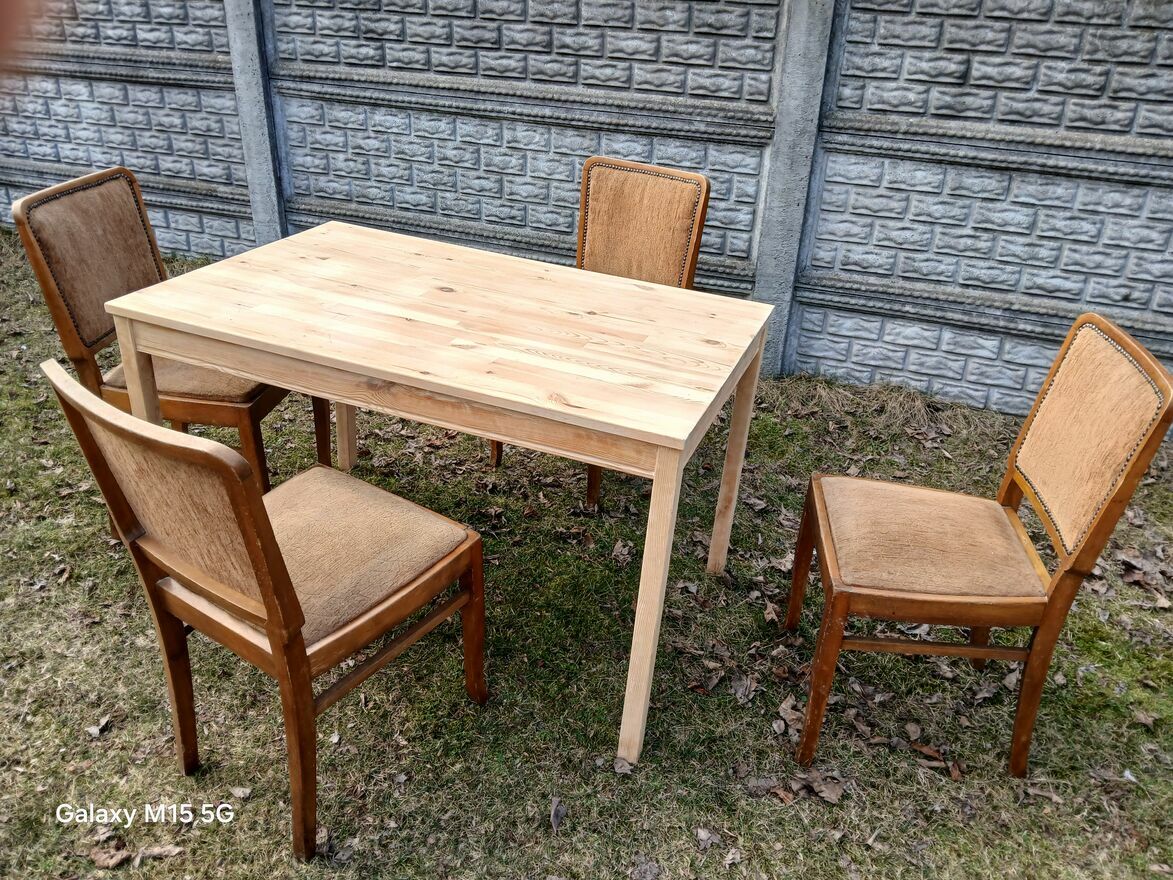 Sprzedam stol z drewna plus krzesla